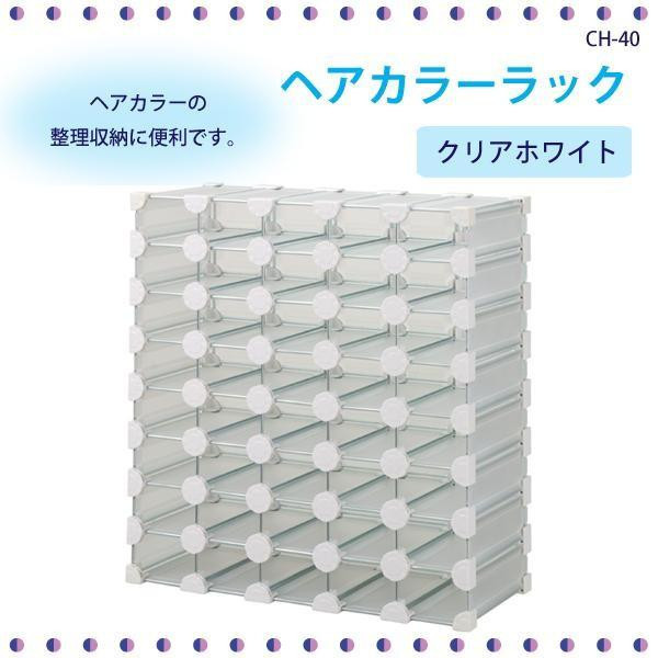 8段×5列でヘアーカラーが40本収納できます。底面がフラット仕様でカウンターの上や収納棚への格納が可能です。 製造国:日本 素材・材質:PP、スチール 商品サイズ:高さ420×幅395×奥行185mm 重量:3500g 仕様:完成品耐荷重:6000g ※サプライヤー直送品 ご注文後9~12営業日後の出荷となります【商品名】ヘアカラーラック CH-40 クリアホワイト80741