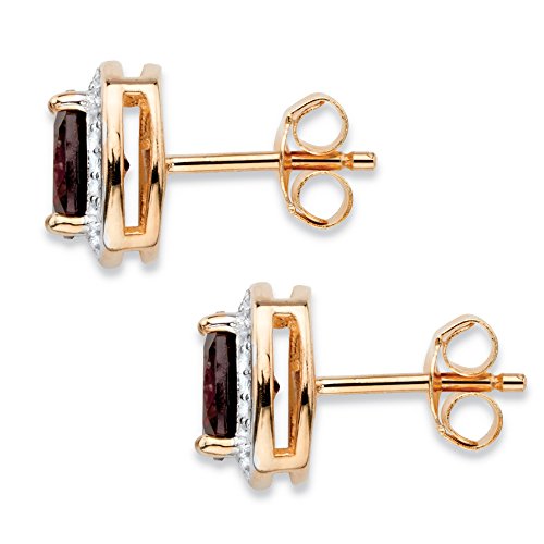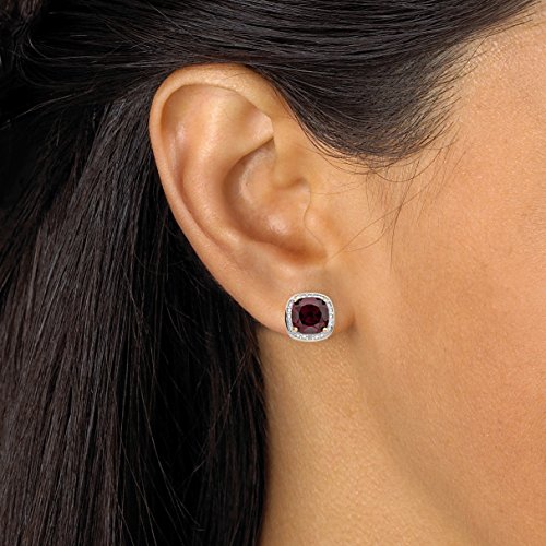 These gorgeous drop earrings shimmer with rich color. Featuring genuine red garnet rounds in a pave-style design highlighted by a glittering diamond accent, these earrings add instant glamour to any outfit. 3.20 carats T.W. Crafted in 14k yellow gold over sterling silver. - 58795Feature