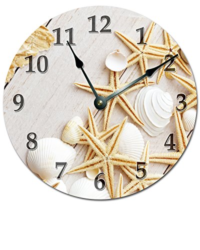 -. Binding : Kitchen -. Brand : Sugar Vine Art -. Color : White, Tan -. EAN : 4913253169324 -. Feature : Large 15.5" Open Face Clock NO COVER OR FRAME. / Not Actual Wood. A printed image adhered onto a thick hard MDF wood base. / Quartz clock movement made in USA, Guaranteed 2 yrs, AA battery not included. / Large 7" metal (not plastic) hands. Each clock is handmade to order. / Recommended for indoor use not outdoor. There is a built-in hanger on the back of the clock movement for easy hanging. -. IsAutographed : 0 -. Label : Sugar Vine Art -. Manufacturer : Sugar Vine Art -. Model : 3004-16 STARFISH AND SEA SHELLS -. MPN : 3004-16 STARFISH AND SEA SHELLS -. PackageQuantity : 1 -. PartNumber : 3004-16 STARFISH AND SEA SHELLS -. ProductGroup : Home -. ProductTypeName : HOME -. Publisher : Sugar Vine Art -. Size : 15.5 inches -. Studio : Sugar Vine Art -. Title : STARFISH AND SEA SHELLS CLOCK Extra Large 15.5" to 16" Wall Clock - Beachy Wall Clock