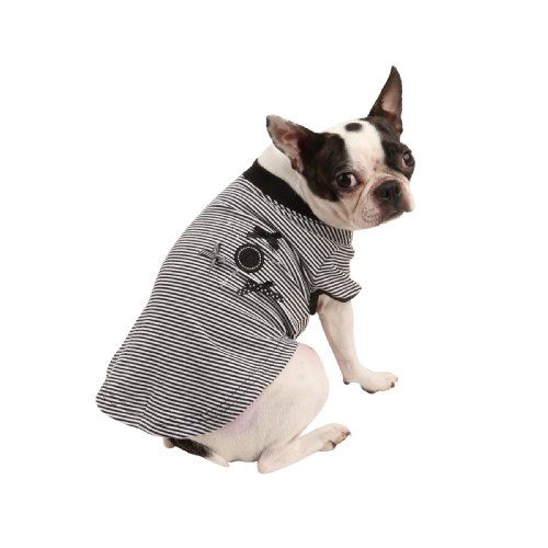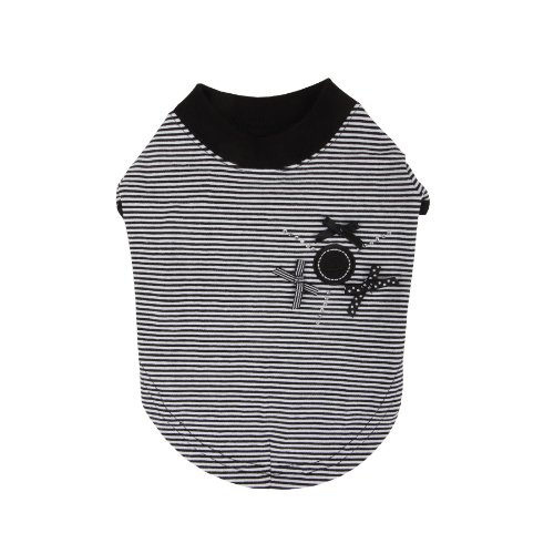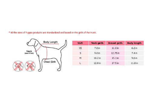 Studio : Puppia Int'l Inc. Publisher : Puppia Int'l Inc. Binding : Misc. Product Description The Puppia(R) Bash round neck shirt features a stripe pattern and solid scheme. It is decorated with three different ribbons and a "P" patch. It is available in Pink and Black in sizes ranging from Extra-Small to Large. Please note that because these products were created with small/medium dog breeds in mind, larger sizes (i.e. Large, Extra-Large, etc.) do not necessarily mean larger breeds. Please refer to image of the size chart. It is very important to measure your dog with a tape measure according to the size chart. As a general rule of thumb, if your dog falls in between sizes, it is usually better to go up a size. Weight figures are for estimates only. Always use actual measurements. Please note that when measuring your dog for clothing, it's very important to have an accurate measurement of your dog's neck and chest girth. IMPORTANT: Please note that when measuring your dog, the measurement for the neck must be taken at the BASE OF THE NECK and chest girth must be taken behind the front legs. Also it is important to take into account the size of the dog's head as well as neck girth and chest girth. Since some dogs have a much larger head than their neck, please be sure that the neck opening is large enough to slide over your dog's head. 0