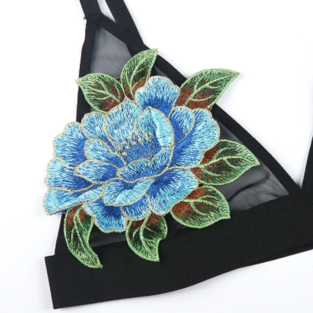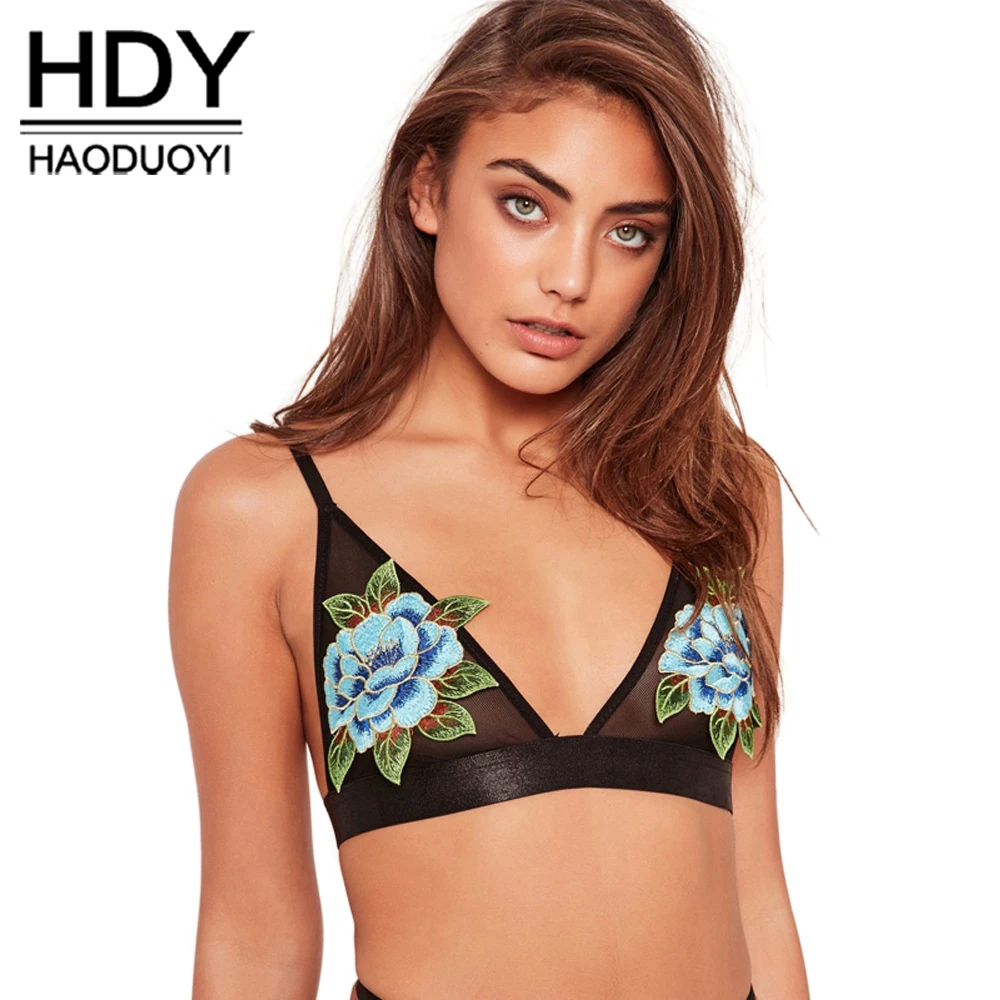 HDY Haoduoyi Floral Embroidery Bra Sleeveless Off Shoulder Female Crop Tops Brief Style Sexy Sheer Black Ladies Bralettes |