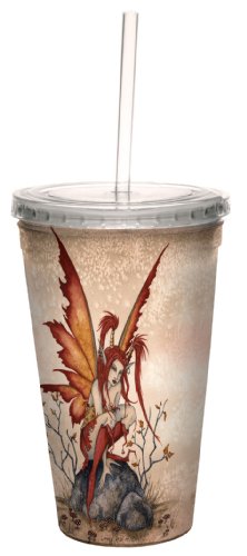 Tree-Free Greetings cc33549 Fantasy Little Red Mischief Fairy Artful Traveler Double Walled Cool Cup with Reusable Straw by Amy Brown, 16-Ounce