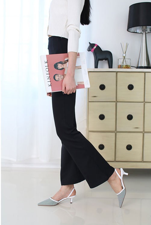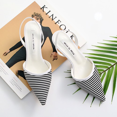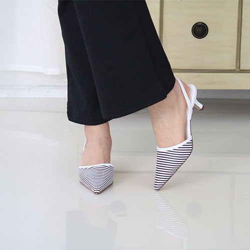 商品名:パンプス レディース ポインテッドトゥ ストライプ スリングバック 2018 春 ファッション 靴 婦人靴