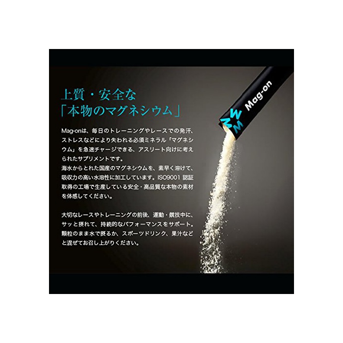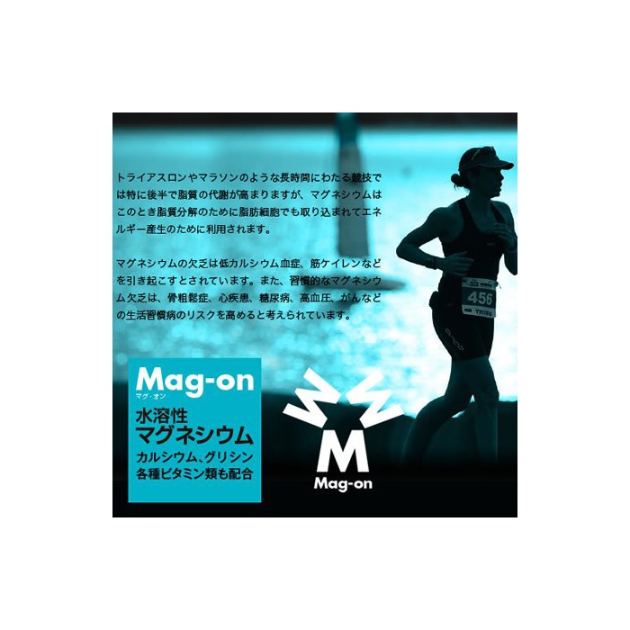 일본인 애슬리트(운동선수)의 숙명,마그네슘 부족.Mag-on은,트레이닝이나 레이스 에서의 발한,스트레스에 잃게 되는 것을 계속하는 마그네슘을 급속 차지 하는 애슬리트(운동선수) 사양의 서플리먼트