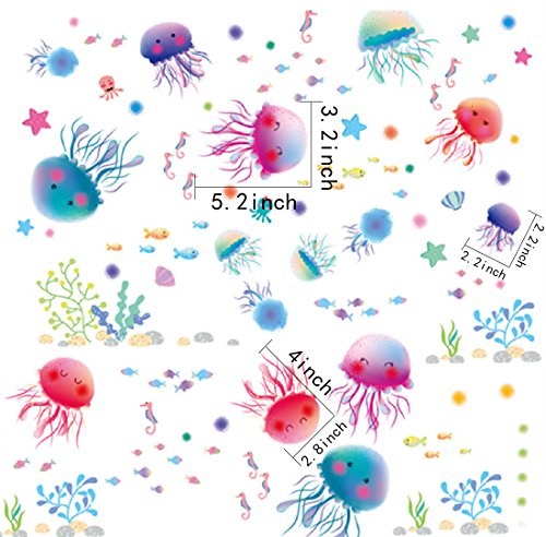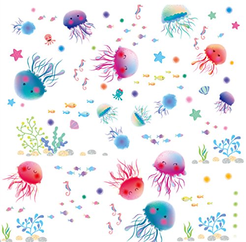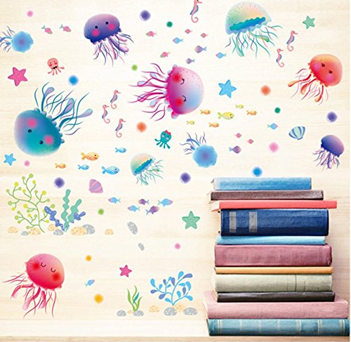 Removable Creative 3D Fun Fish Jellyfish Underwater World Wall Decals Kids Room Wall Decorations Art Décor Stickers Nursery Décor 3D DIY PVC Art Decal Bedroom Bathroom Sticker