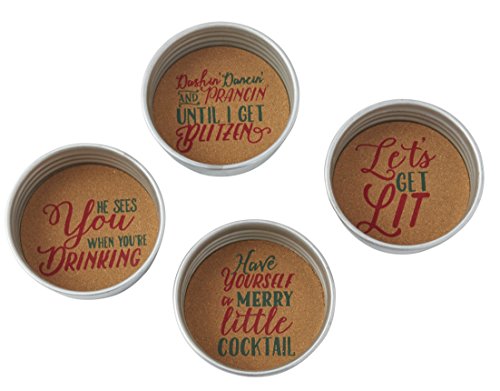 Mud Pie 4255015 Christmas Wine Coasters (4 Pack)
