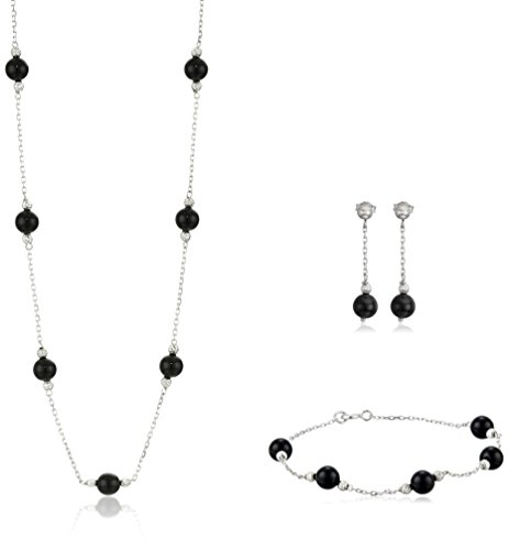 Sterling Silver Onyx Tincup Necklace, Earrings and Bracelet Jewelry Set