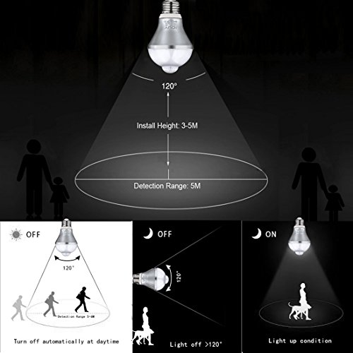 - Motion Sensor LED Bulb: The light will be turned on when the ambient light is low or dark and movement object goes into the effective area; And the light will be turned off Close within 60 seconds when movement object leaves the effictive area or movement object keeps motionless.