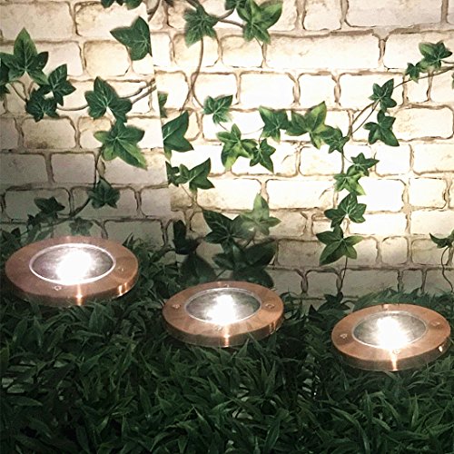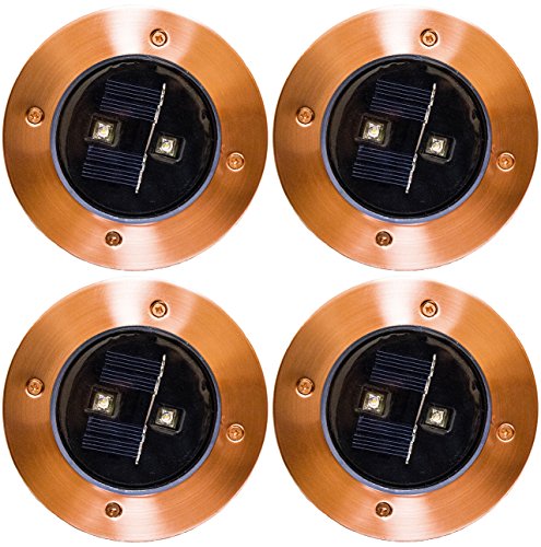 Solar Lights Outdoor Pathway Decorative Waterproof Garden Deck Light Upgraded Dual Warm White LED Brgiht 10 Lumen Decorations Uplight Sogrand Copper Step Lamp for Patio Outside Landscape Walkway 4Pack