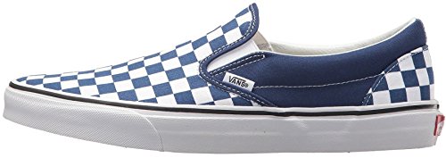 Product Description A low profile, slip-on shoe, the Vans Classic Slip-On has elastic side accents and padded collars for extra comfort. It also features the Vans flag label and signature waffle outsoles for firmer grip. 0