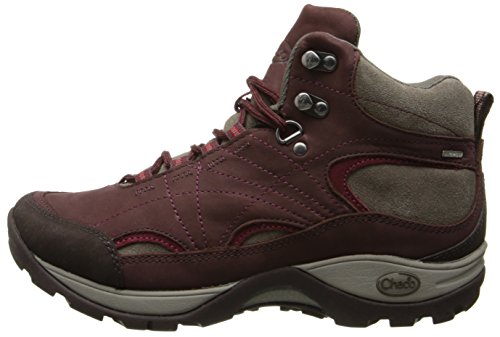 Mid-cut waterproof hiking boot with nubuck and suede upper featuring gusseted tongue to keep debris away