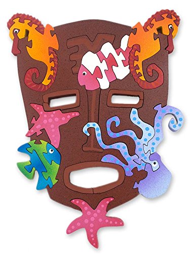 NOVICA Animal Themed Sculpture Wood Display Jigsaw Puzzle, Multicolor, 'Tastuan Mask with Sea Life'