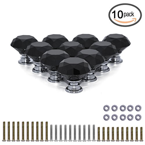 Package Included: 10* Black Crystal Glass Knobs 10* 0.79 inches Screws 10* 0.98 inches Screws 10* 1.18 inches Screws 10* Metal gaskets