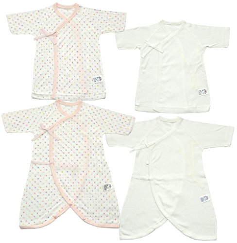 -. Title : ベビーストーリー 日本製 新生児肌着4点セット 星水玉&無地 メルマ加工フライス 50cm MI1500-4