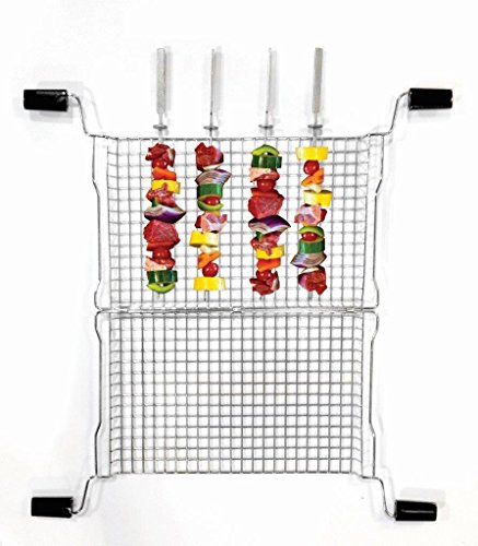 The Ronco rg2002drm mesh basket & 4 kabob rods for the ready grill is a unique all purpose basket that has a small square design for holding small items like chicken nuggets, French fries, popcorn shrimp, etc. The mesh basket comes with a set of 4 stainless steel kabob rods so you make perfect shish-kabobs every time. Just skewer your meat and veggies, place upright in the mesh basket and grill.Feature