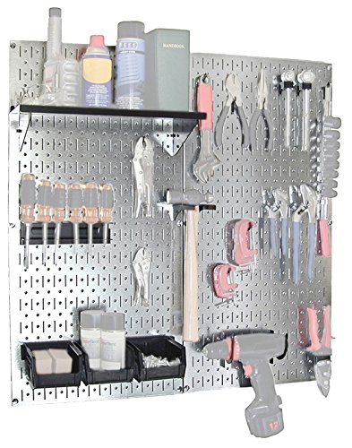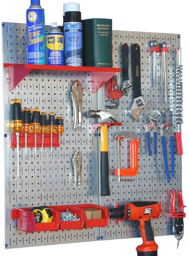 The Wall Control Pegboard Utility Tool Storage Kit knows that the best handyman is an organized one. Never misplace so much as a single bolt with this handy pegboard kit. Two durable pegboard panels are included, made from durable, heavy duty 20-gauge steel with a scratch-resistant galvanized finish. Installation is simple: no frame is required and all the necessary mounting hardware is included. An assortment of 15 hooks/brackets are included to get you started, along with a hammer holder, a screwdriver holder, a shelf assembly, and 3 plastic bins; bins and shelf are available in your choice of color: black, blue, red, or white. Tools are not included. About Wall Control For over a decade, Wall Control have provided home handymen and do-it-yourselfers with simple, easy-to-install wall storage available in a variety of colors and styles to suit any room in your home. Domestically based in Tucker, Georgia, Wall Control ensures quality American craftsmanship that's guaranteed to last a lifetime and looks great while doing so. Its patented designs are here to make your life easier, made from sturdy materials that let you customize any room in your home the way you see fit. Tool storage pegboard for home or garage. Dimensions: 32W x .625D x 32H inches. Simple installation, no frame required. Hardware, pegs, bins and more included. Made of solid 20-gauge steel. Galvanized finish with colored accessories.Feature