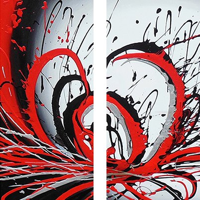 Abstract oil paintings,black and red lines,paint spots,very passionate.
