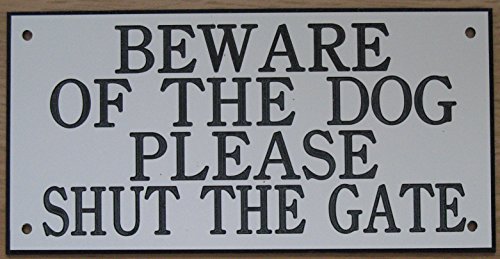 6in x 3in ACRYLIC BEWARE OF THE DOG PLEASE SHUT THE GATE SIGN IN WHITE WITH BLACK PRINT