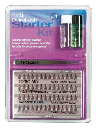 Ardell Duralash Starter Kit With Tweezer gives you beautiful lashes in seconds. It allows every woman to create their own customized lash look. It features salon quality lashes that stay on for weeks and are easy to apply. Its perfect for both beginners and professional make up artist. Apply a few for a natural daytime look or apply a full set for a glamorous night on the town. This incredible kit contains everything you need to create beautiful lashes. Contains everything you need to start applying individual lashes 56 individual black lashes (13 flare short, 26 flare medium & 13 flare long Individual lash applicator .07 oz. lashtite adhesive .07 oz. lashfree remover