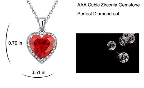 - Feature : 1. Specifications: 1.Chain Length: 18 inches + 2 inches. Pendant Height: 0.8 inches. Pendant Width: 0.5 inches. | 2.Weight: 0.25 ounces. | 3. Main Stone: AAA Cubic Zirconia. Stone Color: Ruby, Clear/Transparent. Stone Shape: Heart, Round. | 4.Metal Type: Eco-friendly White Gold Plated. | 5. Craftsmanship: Triple-layer vacuum furnace plating, Microscopic Inlay. / 2. Please make sure that you buy from "NEEMODA FASHION" (The only channel for authentic NEEMODA products) to protect your legal benifits. NEEMODA adopts the latest craftsmanship and the highest standards. We have strict QC process to make sure that all products are in good conditions. The defect rate is less than 0.1%. At the same time, NEEMODA has a perfect after-sales service system. If the item has quality issue within 30 days of purchase, you can return it and have a replacement. Most NEEMODA items have design patent and the international authoritative Switzerland SGS Certification. We have confidence that : with the same price, we have the best quality; with the same quality, we have the best price. / 3. This Ruby Cubic Zirconia heart pendant necklace is an ideal gift for your loved ones, e.g. girlfriend, fiancee, your family members, wife, mother, daughter, lover, Valentine, classmates, colleague or just a friend, etc. It expresses your love to them. It is also a good choice for birthday, anniversary, graduation, engagement, wedding, holiday, party, prom and any other occasions, which is endowed with special significance . / 4. NEEMODA uses Authentic AAA Cubic Zirconia gemstone and adopts the microscopic hand-inlaid craftsmanship. Every piece is finished by a professional technician with more than ten years of experience. All items are packed in NEEMODA original elegant jewelry gift box . / 5. NEEMODA aims to provide to our customers the best items and services with the lowest prices. We are committed to providing customers with the best shopping experience and 100% customer satisfaction. If you have any questions about our products and services you can contact us, we will answer your questions as soon as possible and solve your problem satisfactorily. All NEEMODA items uses the Amazon FBA delivery service to make sure that our customers can receive their items in time. At the same time, our customers can enjoy a 30-day hassle-free return and replacement policy. NEEMODA also will be happy to hear from our customers the advice and suggestions for improvement. NEEMODA will improve itself constantly. And we will also give a reward to the good suggestions. Your feedback is our motivations to improve. We are looking forward to your ★★★★★ feedback. Make sure you have Add this item to your Wish List to keep an eye on the latest NEEMODA offers and promotions .