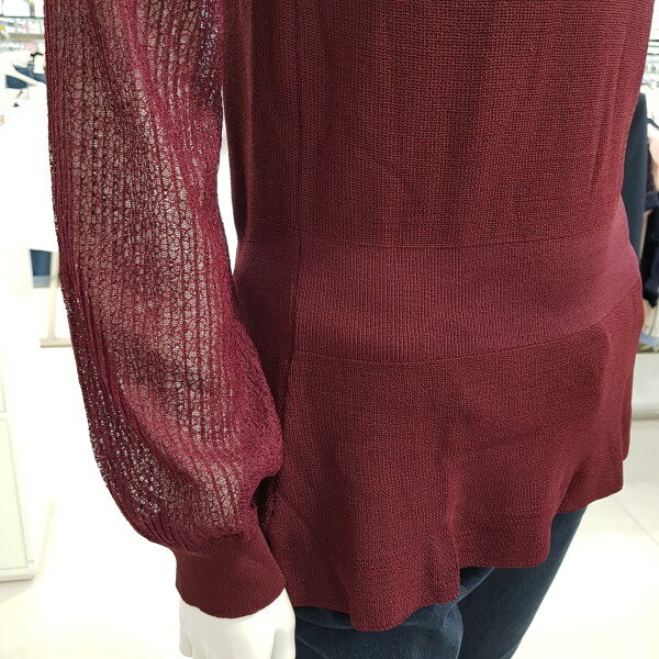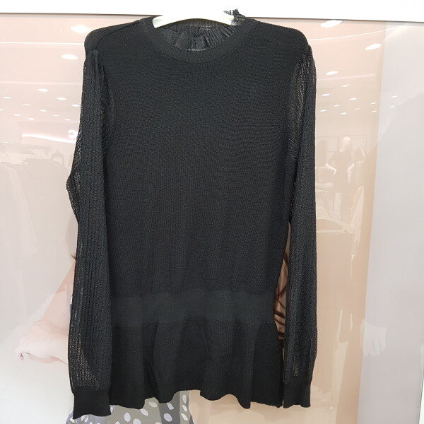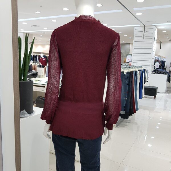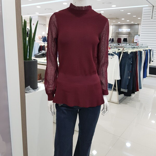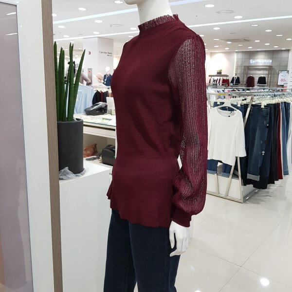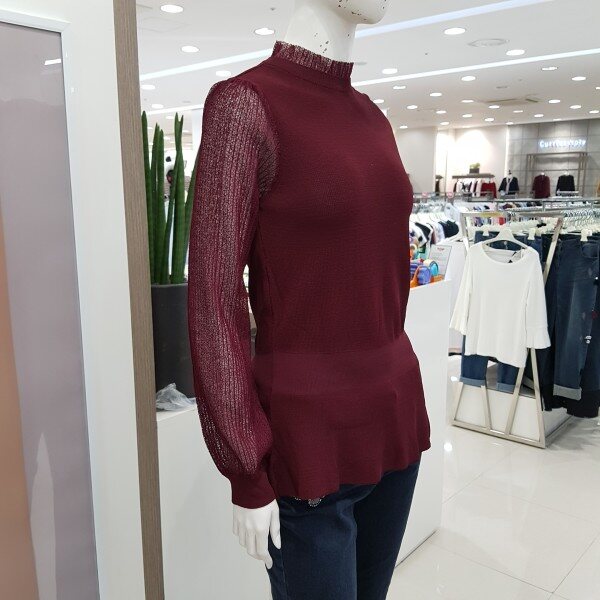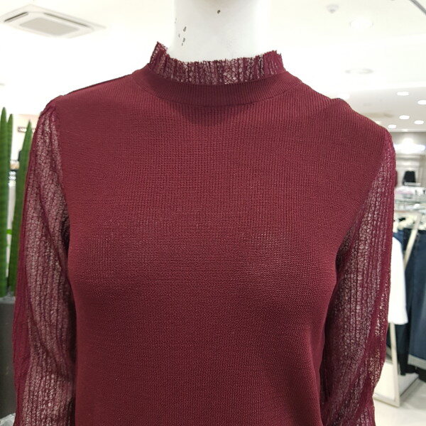 니트 티셔츠 넥라인으로 올라오는 프릴니트와 소매 가 고급스러움과 여성스러움을 느끼게 해주는 니트티셔츠입니다