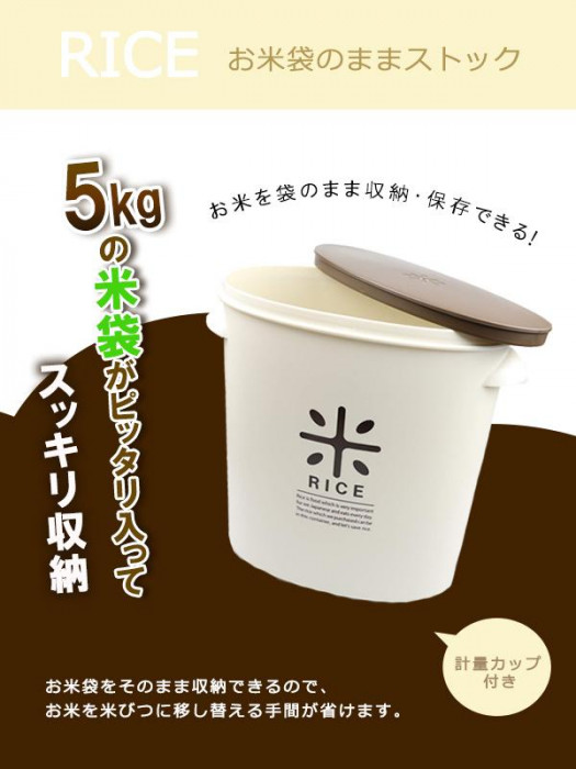 fk094igrjs5kgの米袋がピッタリ入るのでスッキリと収納できます サイズ (約)幅310×奥行155×高さ320mm 個装サイズ:31×16×32cm 重量 個装重量:700g 素材・材質 本体・ふた:ポリプロピレン(耐熱温度100度、耐冷温度-20度) 計量カップ:ポリプロピレン(耐熱温度120度) 仕様 容量/本体:約8800mL、計量カップ:約200mL 付属品 計量カップ 製造国 日本 お米を袋のまま収納・保存できる 5kgの米袋がピッタリ入るのでスッキリと収納できます