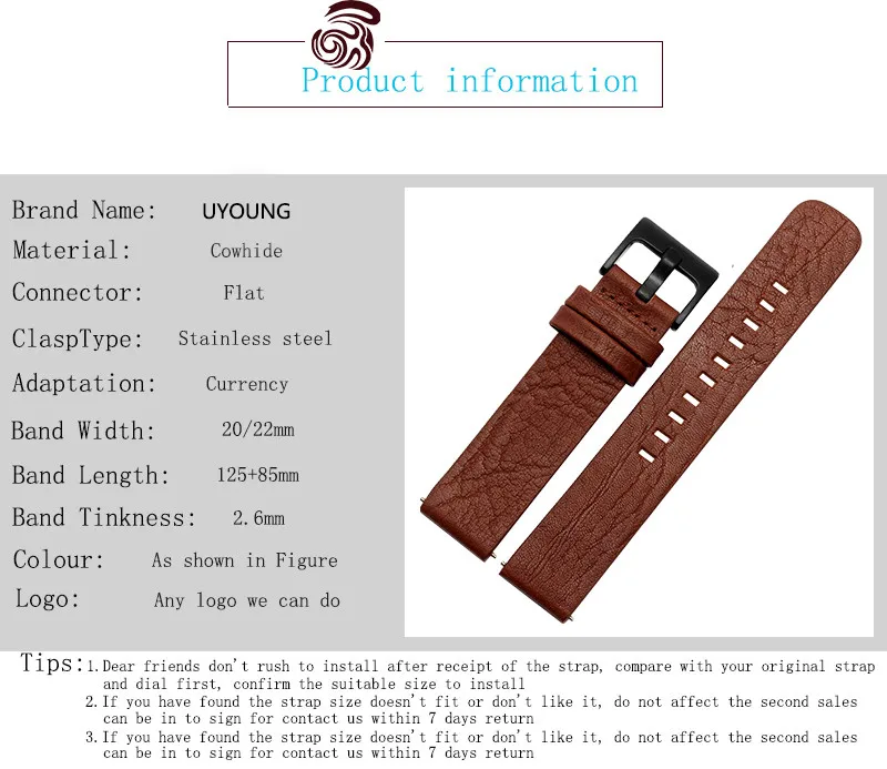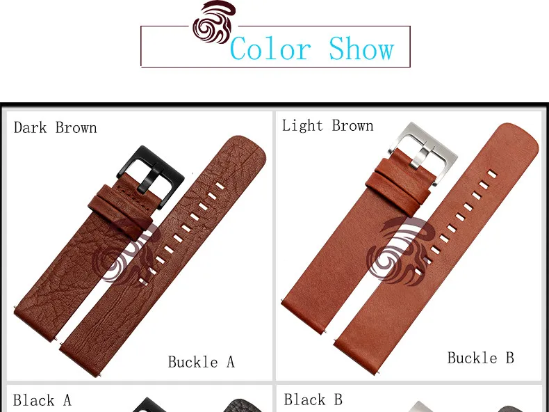 [해외] 22 미리메터 정품 가죽 손목 손목 남성 밴드 브랜드 특별 시계 스트랩 + 도구 여러 가지 빛깔의