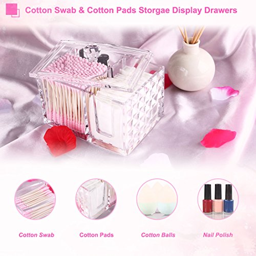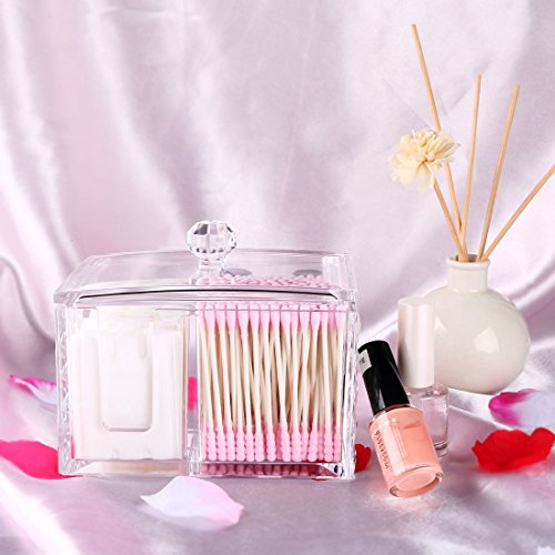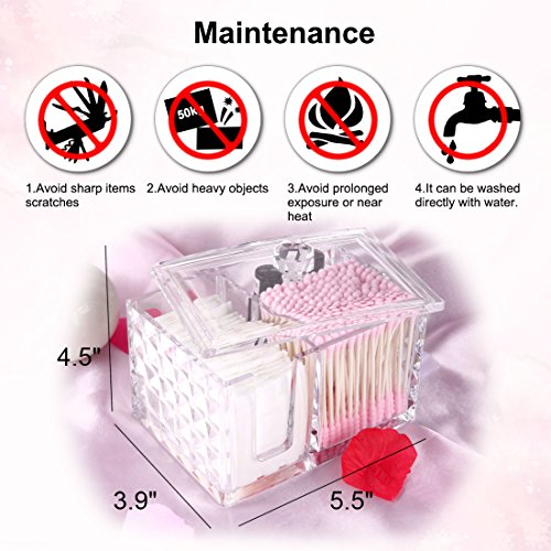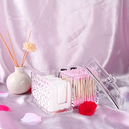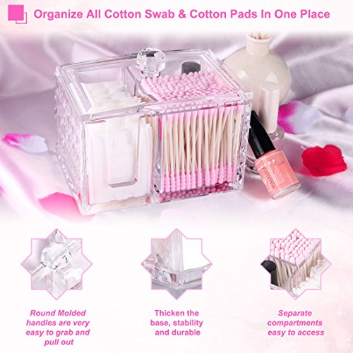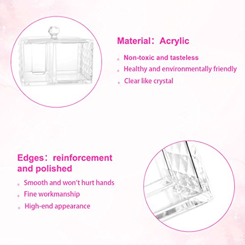 Cotton swab and cotton pads holder-Our high capacity storage organizes have multiple compartment, prefect for store your cotton balls, cotton swabs, makeup pads, and other makeup accessories in one place and in neat.