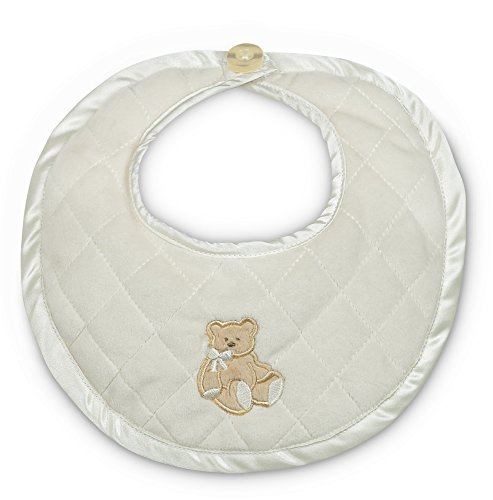 -. Feature : Lil' Teddy Teddy Quilted Baby Bib, 10 Inch, Ivory Color / Nice Large 10 Inch Size / Ivory Color for Boy or Girl / Matching Satin Binding / 100% Polyester, Washable