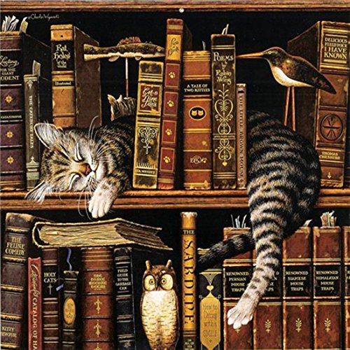 ZHENC 5D Diy Full Square Diamond Painting Cat Sleep on Bookshelf Landscape Embroidery Full Drill Craft Decor Cross Stitch Kits