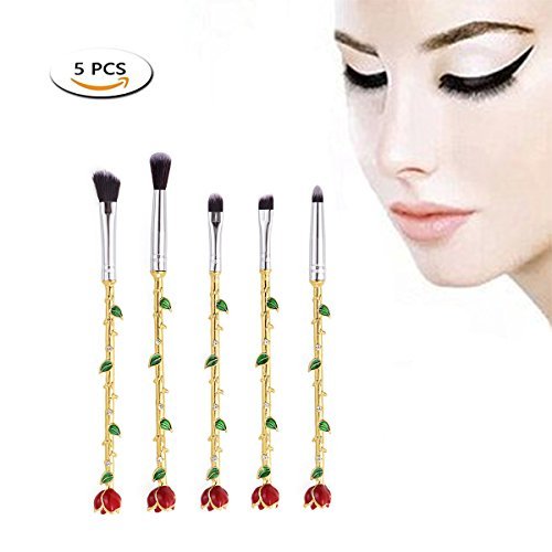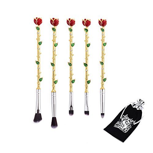 - New Style Makeup Brush:5 Pcs rose flower Makeup Brush,Including Eye shadow brush+Blooming powder brush+Detail brush+Nose brush+Eyebrow brush,Package is Flannelette bag,Material is Aluminum tube and alloy handle,bristles are mainly fiber wool,The touch is very soft and Brush grasp powder is fine.