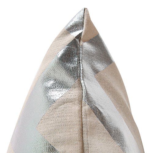 Deconovo Recycled Cotton Chevron Stripe Foil Print Decorative Geometic Cushion Throw Pillow Cover with Invisible Zipper for Chairs, Silver, 18×18, Set of 4