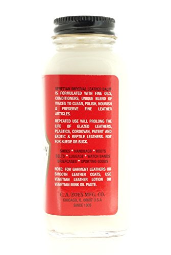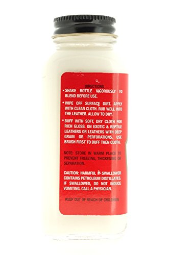 Product Description Fine oils, gentle cleaners and imported waxes formulated to clean, condition, preserve and polish all smooth leather footwear and articles. A time-tested formula, a favorite since 1907, designed to deep clean leather pores while nourishing and moisturizing leather fibers to protect and restore. Frequent use will add years to your leather items and help protect and prevent scuffs and scratches. For smooth leathers, cordovan, patents, reptile leathers and plastics. Use on shoes, boots, belts, handbags, briefcases, luggage, upholstery, and sporting goods. 0
