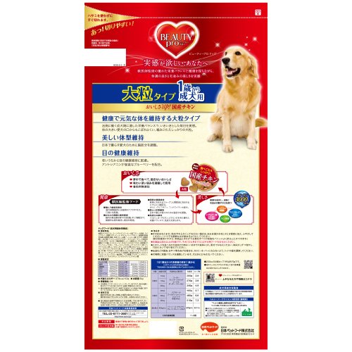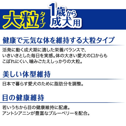 原材料:穀類(トウモロコシ、コーングルテンミール、小麦ブラン、小麦粉、ライスブラン)、肉類(チキンミール、チキンレバーパウダー)、油脂類(動物性油脂、植物性油脂、共役リノール酸、γ-リノレン酸(オメガ-6脂肪酸))、魚介類(フィッシュエキスパウダー、マリンコラーゲン、小魚粉末(DHA、EPA/オメガ-3脂肪酸源))、ビール酵母(β-グルカン源)、糖類(オリゴ糖、エリスリトール)、カゼインホスホペプチド、果実類(クランベリーパウダー、ブルーベリーパウダー(アントシアニン源))、トマト(リコピン源)、L-カルニチン、ミネラル類(カルシウム、リン、カリウム、ナトリウム、クロライド、鉄、銅、マンガン、グルコン酸亜鉛、硫酸亜鉛、ヨウ素、コバルト)、ビタミン類(A、B2、B6、B12、D、E、パントテン酸、コリン)、バチルスサブチルス(活性菌)、酸化防止剤(ミックストコフェロール、ローズマリー抽出物)、アミノ酸類(アルギニン、タウリン、メチオニン)、グルコサミン、コンドロイチン、ヒアルロン酸