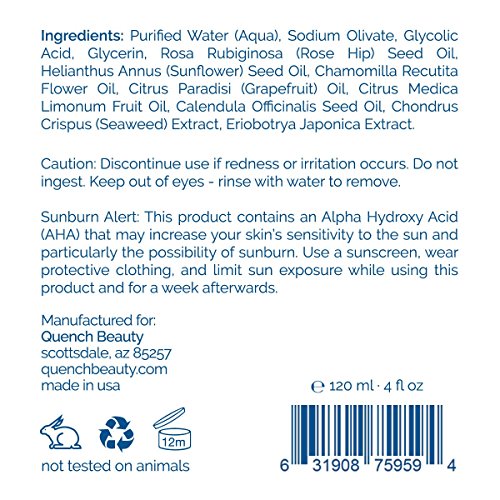 Quench Beauty AHA/Glycolic Acid 10% Foaming Facial Cleanser, 4 oz. / 120 ml
