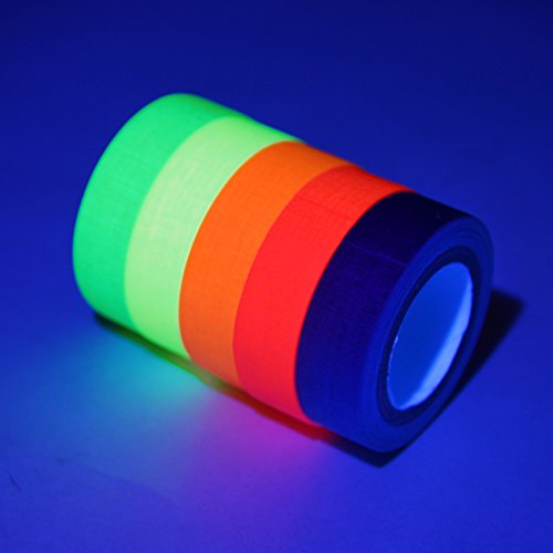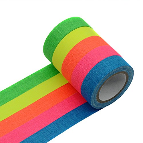 YUKUNTANG 5-Pack UV Blacklight Reactive Fluorescent Cloth Tape Neon Gaffer Tape Set 0.6 in x 16 ft