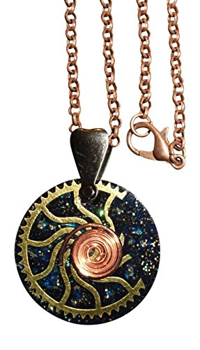 Orgone matrix consists of pyrite, magnetite, copper and zinc alloy metal swirls, resin. Comes with 24" antique copper chain.