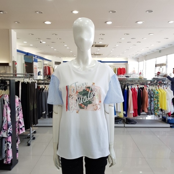 소매 스트라이프 포인트 티셔츠-JA7U6-WKS530-110