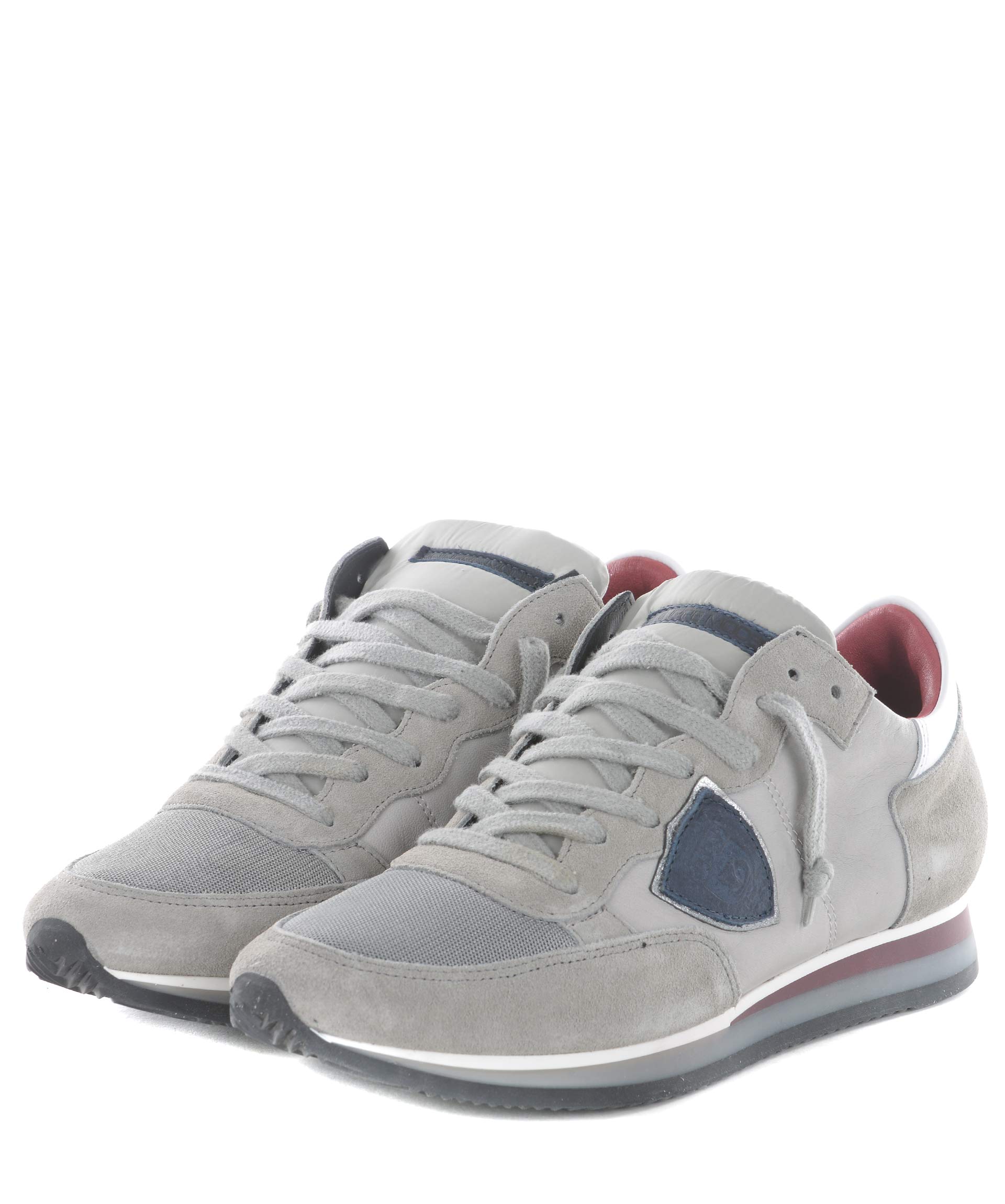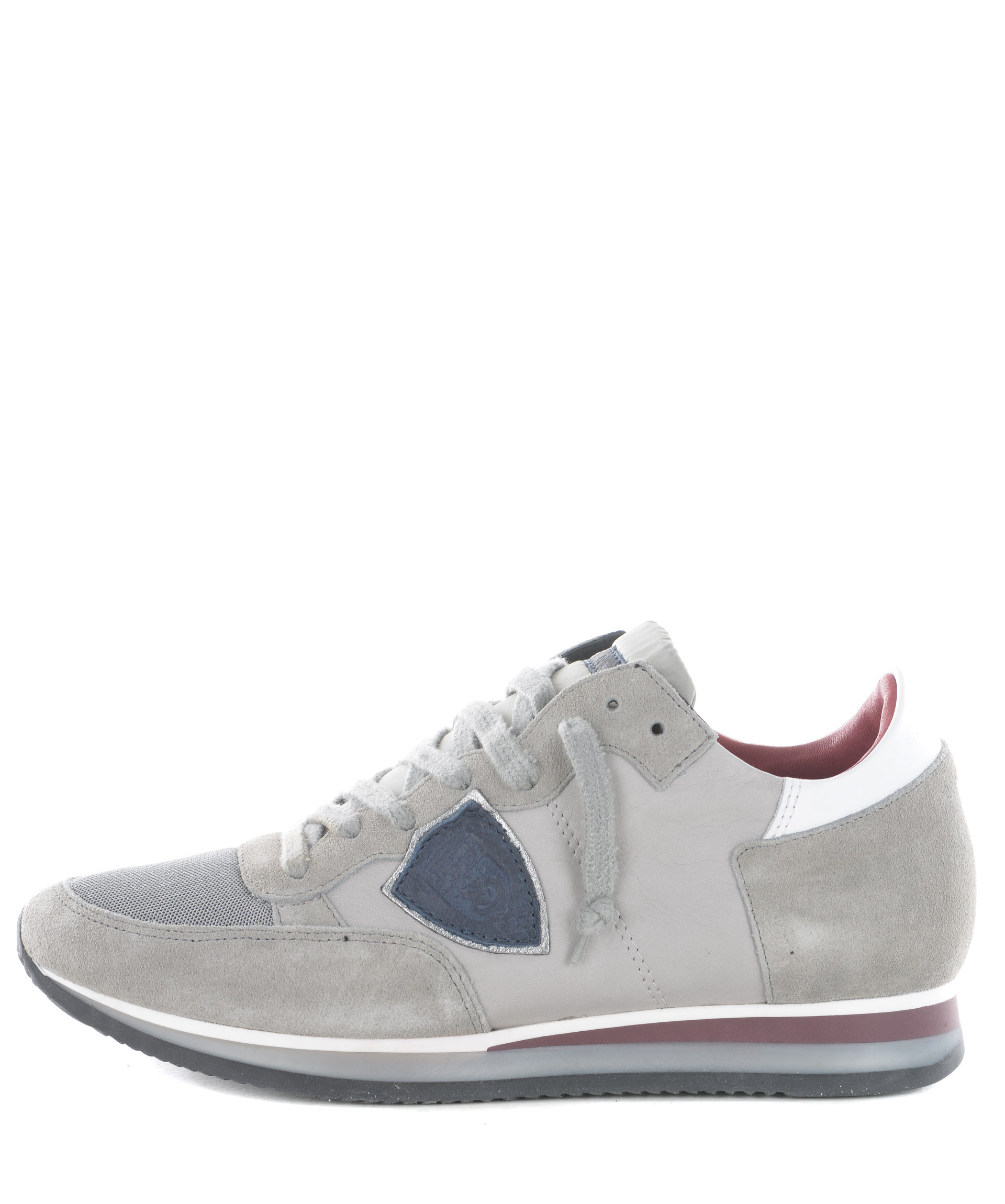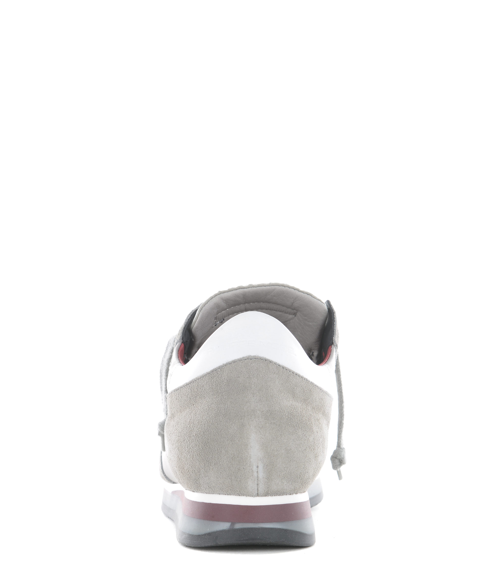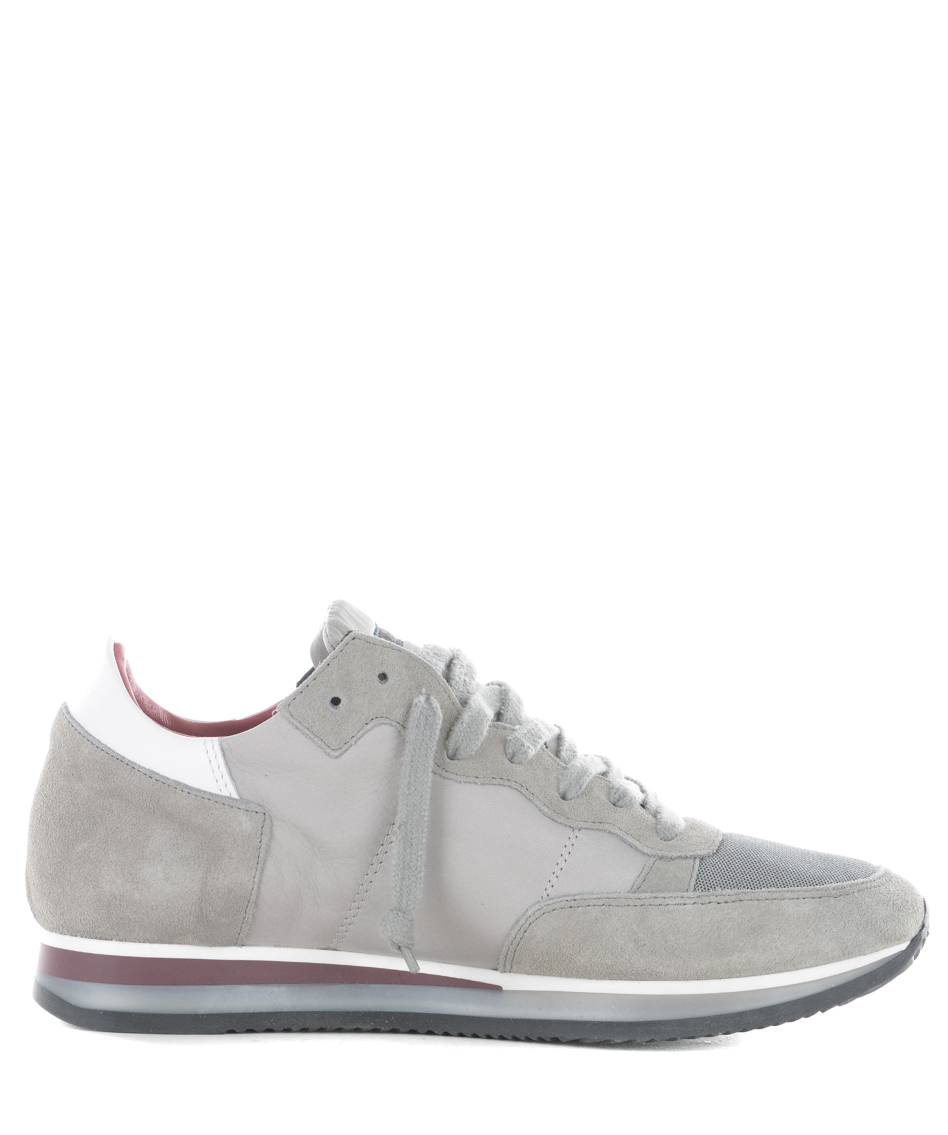 Sneakers Philippe Model in camoscio e pelle Grigio. Inserti in nylon metallizzato alla punta. Pelle a contrasto sul retro. Logo laterale in pelle. Stringhe effetto used. Interno in spugna di cotone. Suola in gomma. Misura in foto 41