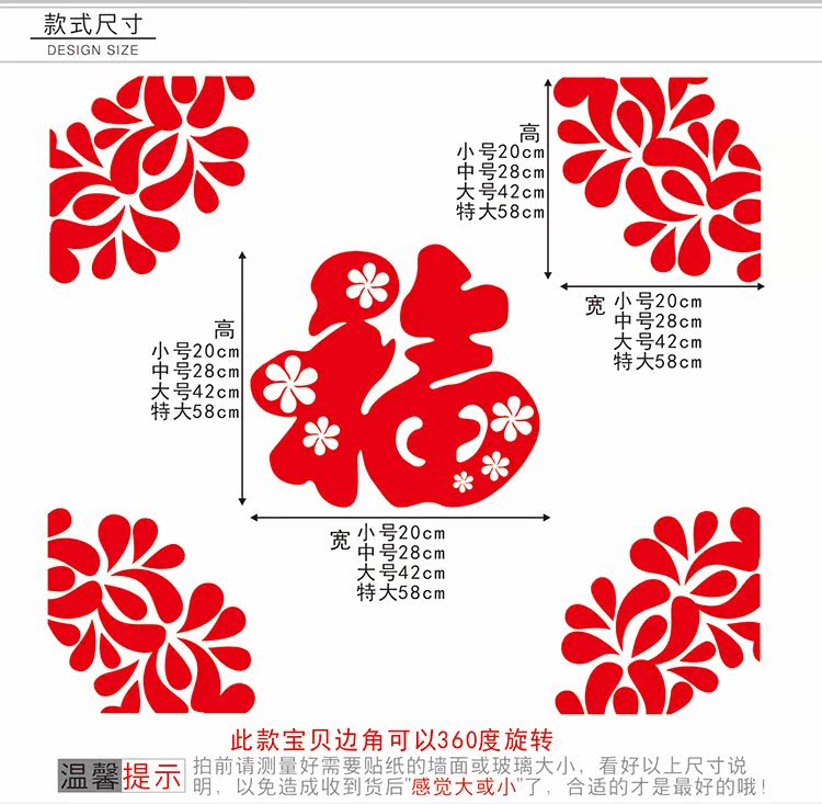 福字墙贴新房装饰乔迁春节福字门贴 新年福字贴纸过年窗花玻璃贴