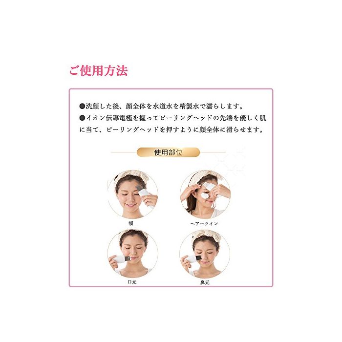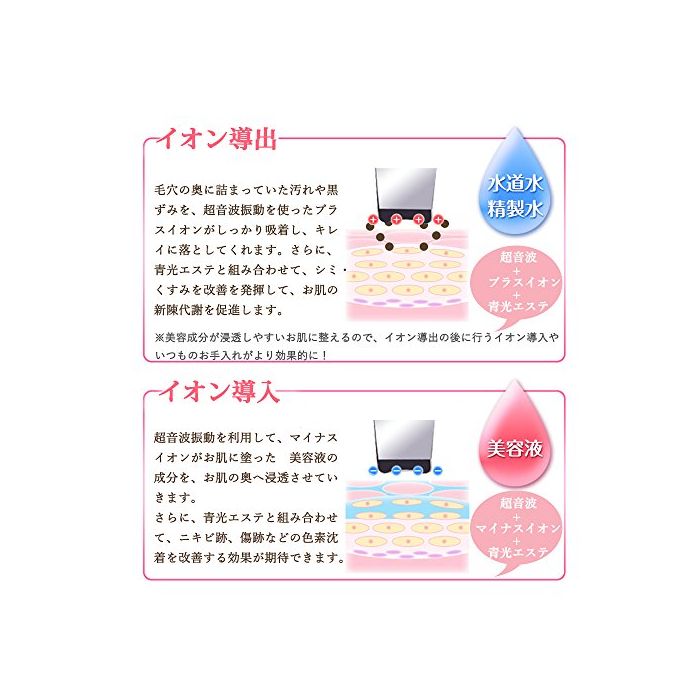 【이온도출】:플러스 이온이 흡착하고, 모공에 가득찬 얼룩이나 검은 얼룩,노화 각질 통상 등의 통상의 세안으로는 떨어뜨릴 수 없는 얼룩을 뺍니다.