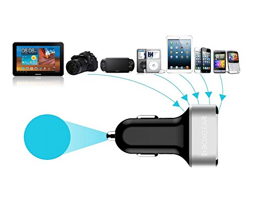 -. Title : 3 USB Port Car Charger, Boxgear {6.6A} Rapid Charger Tri-Port USB Fast Charger for iPhone, Samsung Galaxy, HTC One, iPad, iPod, And All Other USB Plugs