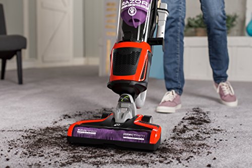 The Dirt Devil Razor Vac Pet upright is powerful, lightweight and easy-to-use. The low profile design steers around and under furniture with minimal effort. Our SPIN4PRO premium pet brushroll is designed and optimized to effectively clean and remove pet hair on both carpet and hard floors. Simply detach the 10ft. cleaning wand and attach the Turboclaw Pet Tool to clean hard-to-reach places like ceilings and stairs. No loss of suction means a powerful clean anywhere in your home. Plus, the advanced three stage filtration system keeps your vacuum running better, longer with a whole lot less maintenance.Feature