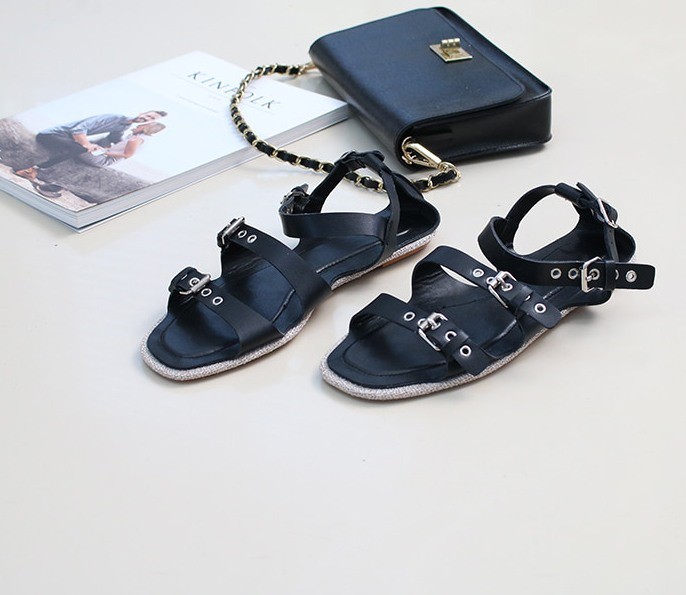 商品名:サンダル レディース 本革 レザー ペタンコ 2018 春 ファッション 靴 婦人靴