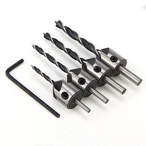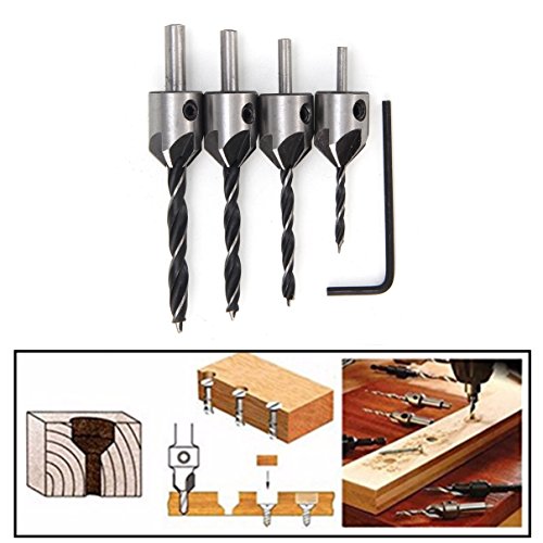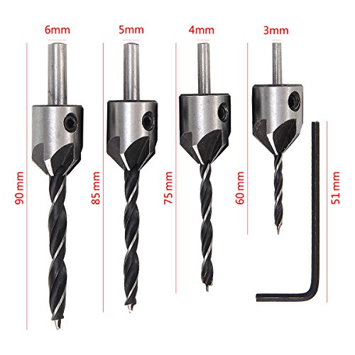 HakkaDeal Countersink Drill Bit,4 Drill Bit Sizes 3/4/5/6 mm ,Carpentry Reamer,Woodwork Drill Bit Set,Woodworking Drill