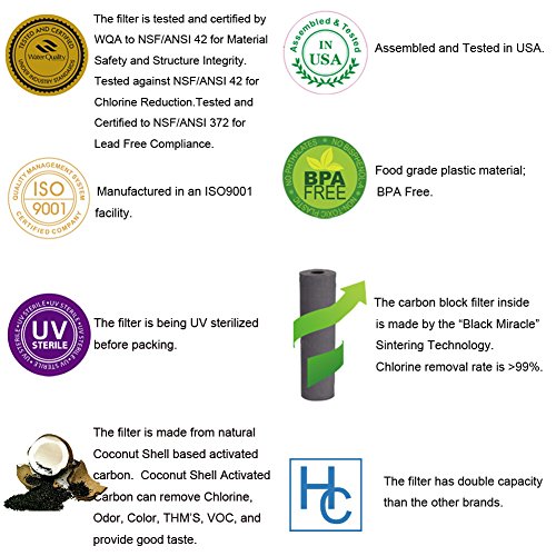 - Contains coconut shell based activated carbon, which helps remove Chlorine, taste, and odor