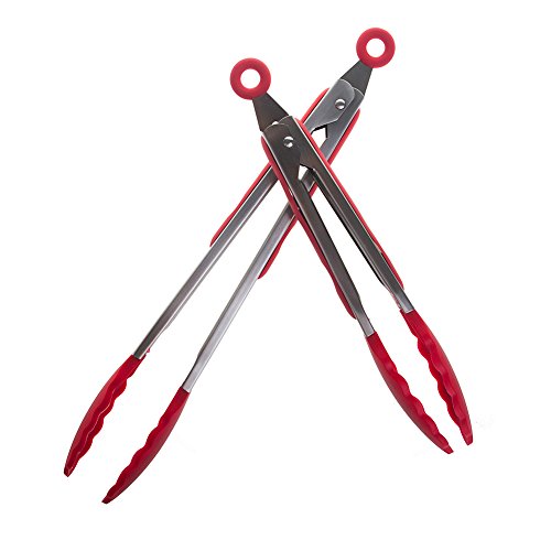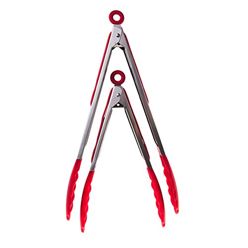 - 2-PIECE TONG SET gives you the ideal utensil for every menu. Our 9" and 12" silicone-tipped tongs have large clamshell heads for easily serving salads or turning the largest cuts of meat on the grill