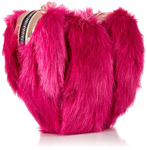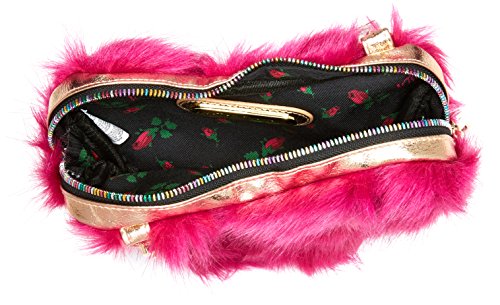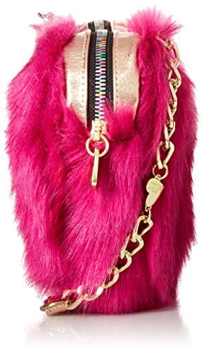 Betsey Johnson faux fur crossbody bag with a removable chain handle.