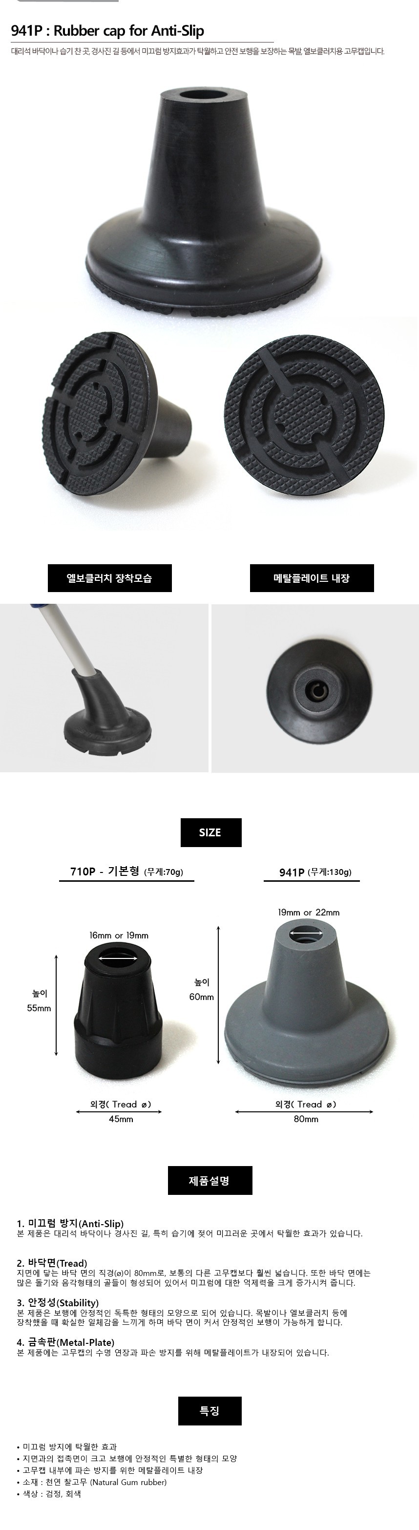 <상품명 : 목발클러치용 미끄럼방지고무캡 941P(19mm)- 2개>