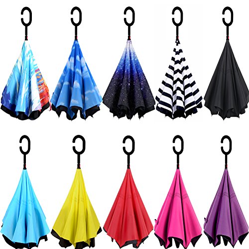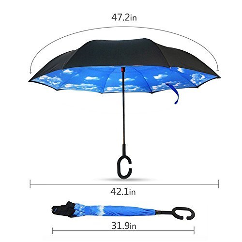 Studio : Happytimelol Publisher : Happytimelol Binding : Sports Product Description Have you ever encountered such a problem with your regular umbrella in rainy days? Enter a building you have to deal with your wet umbrella. Wet arms and legs getting in and out of car doors. Have everything in hand but still have to hold the umbrella in a rainy day. All the water dripping outside the umbrella, soak you or your car or your floor at home, so terrible. Save you from all the hassle of a regular umbrella from now on. Standing design - no need additional standing holder, reverse folding design makes it easy to stand by itself and drip free. Creative inverted design - you can open/close this inverted umbrella as you open/close the door, no more getting wet before you eventually entering or exiting a car or a building. Brilliant inside-out design - inside-out design allows you to fold your umbrella with the wet surface inside and keep the dry side outward. C-shaped handgrip - ergonomic c-shaped soft rubber handgrip to place around your wrist, it is convenient for you to take things with your hands. Why Happytimelol umbrella? Excellent workmanship, professional on the outside, beautiful on the inside. Most ideal and practical gifts to your family, friends, colleague, lovers etc. A necessary tool for everybody all year around no matter home, car, office or outdoor travel. 3-in-1 functional umbrella, windproof, sun proof rain protection. Breathable double layers design, the smooth top layer is made of upf>50 sunscreen fabric and the second layer is made of water repellent pongee fabric there are 10 patterns to choose from: Blue sky, amazing starry sky, choi wan, simple stripe, sky blue, purple, rose red, black, red, yellow. It could not be better to choose the proper colors and pattern to go with your outfits or your mood, so amazing. Leave your hands free to carry groceries, packages, suitcases and use your mobile phone in the rain. 0